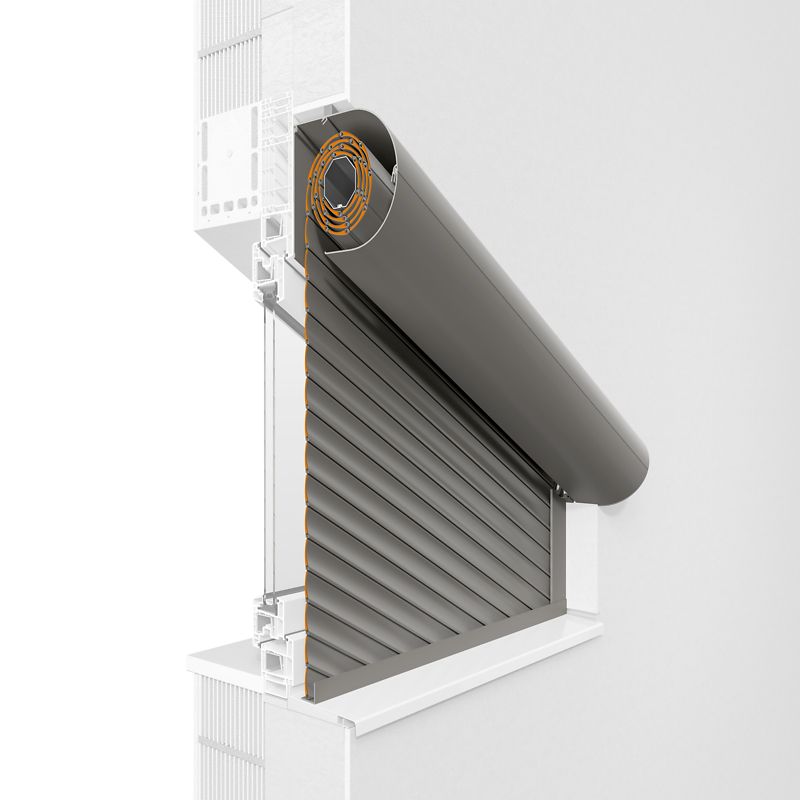 Das Rollladensystem passt sich in die Fassade ein und kann wahlweise mit eckiger oder fünfeckiger Frontblende verwendet werden.